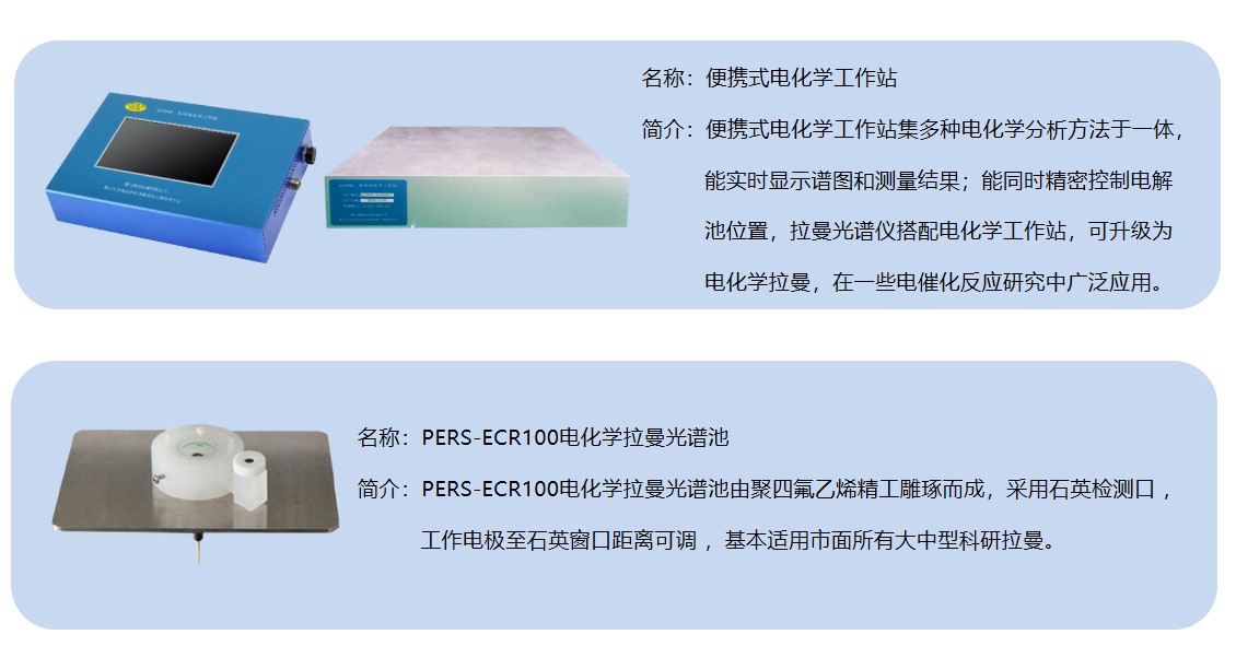 PERS-DR1702EC电化学拉曼光谱联用检测系统光谱仪系统是由电化学工作站、便携式拉曼光谱仪、显微成像系统组成。实现电化学测量与拉曼光谱采集同步获得原位反应物与产物信息,利用拉曼散射效应可以检测不同电化学反应的中间产物,比如氧还原反应等,是用于解释电化学反应过程反应机理的完美解决方案。
