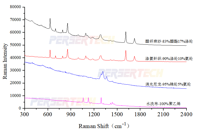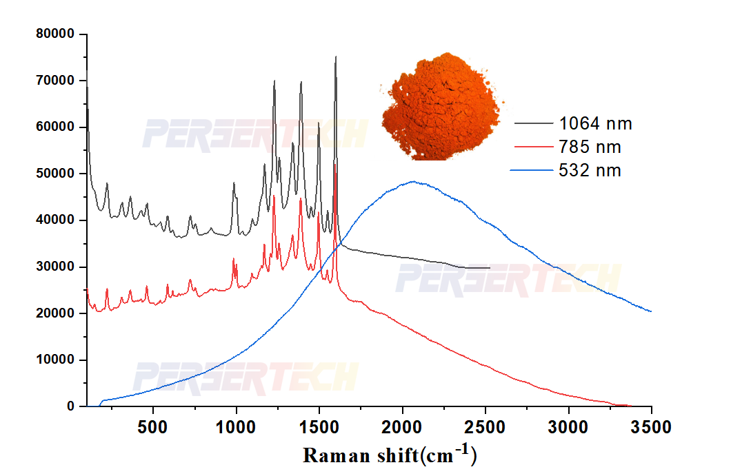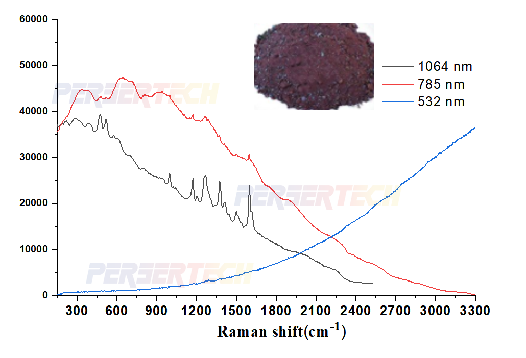 对于强荧光物质或深色物质,1064nm拉曼信号较强,以下为深色物质不同波长测试: